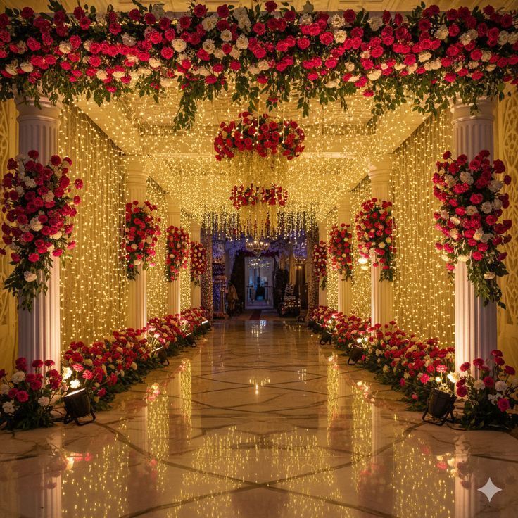 Flowers remain one of the most important elements in wedding decoration. Floral installations create romance, elegance, and visual beauty.